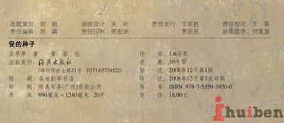 《安的种子》以本、静与安三个小和尚为叙述线索,讲述了一个有关大自然规律的寓言故事。本书文字精准而乾脆利落,图像简纯而突显人物性格,像急躁的本、刻意经营的静与泰然的安。此外,文图结合所展示的说故事魅力,更令人击赏。