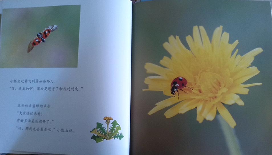 *****这本书很推荐!!照片经修饰后,画面很美!很细致,对小动物的取景也很好,很多是摄影师经过 长时间实践捕捉的镜头,很难得!比如螳螂吃蝗虫的幼虫,蒲公英种子,小昆虫避雨等等,很多是我们观察不到或者观察不细致的内容!平日无法看清,但在书里可以看清,孩子也感兴趣!内容更似科普小故事,但是结合了照片,故事也变得挺有趣!