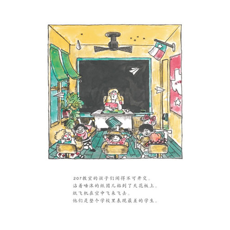 终于,一个阴森森的代课老师来了,她是一个真正的女巫斯旺普,说一不二,布置很多作业,孩子们上天入地地寻找起了尼尔森老师,号称万事通的孩子大声宣布,“也许尼尔森老师的汽车被一大群生气的蝴蝶带走了!”