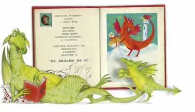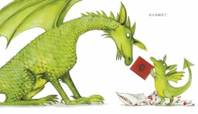 妈妈讲啊讲啊,故事越讲越短,跟原来的故事越差越远,小龙的一身绿也慢慢开始变红,直到最后,妈妈扑通一声,翻身睡了过去。小绿龙彻底变成了小红龙,轰地喷出一口火,把书烧出了一个大大的洞。书里的火龙塞德里克可遭了大殃啰!