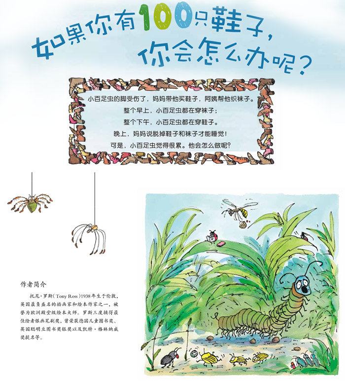 文不达图,或图不胜文,都不是好绘本。好的绘本不会仅偏重其一,而是图文并重,二者不偏废。《百足虫的100只鞋》完全符合这个标准。不止孩子,家长在阅读这本书的过程中,也会领略到故事和文图本身的乐趣,以及更多文图之外的想象与延伸的魅力。