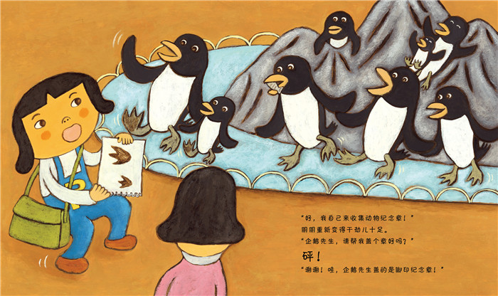 《朋朋爱盖章,砰!》是启发绘本馆出版的启发精选世界优秀畅销绘本之一,适合2岁以上儿童阅读。朋朋喜欢好多东西,有小豆面包、跳绳和炸猪排……可是,她最最喜欢的是搜集纪念章。她的包儿里有一本集章本,走到哪儿都能听到她“砰!砰!”盖章的声音。这一天,朋朋和妈妈去动物园。她来动物园的*目的,就是搜集各种动物的纪念章。可是,动物集章活动已经在昨天就结束了,朋朋失望极了。就在这时,好像有谁拍了拍她的肩膀……