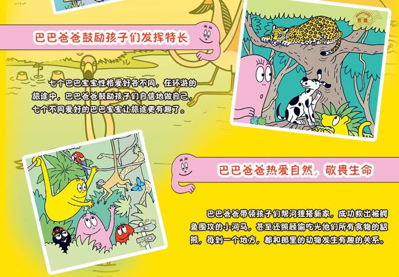 ★跟随巴巴爸爸一家游历欧洲、北美洲、南美洲、非洲,去往10个国家,认识46种动物,体验巴巴爸爸139次神奇变身。