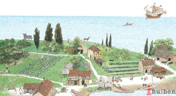幽静的村落,连绵的绿地,古老的城镇,熙攘的集市……既有辽远开阔、沁人心脾的自然景致,也有可感可触、如身临其境的街头风貌。1977年,在中欧几个国家旅行之后,安野光雅完成了第一本旅行绘本《旅之绘本》,后来又相继创作了另外几本,足迹遍至意大利、英国、美国等等。