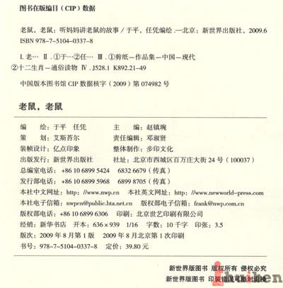 《老鼠,老鼠》,2008鼠年生肖邮票的设计者:艺术家夫妇于平、任凭最成功的生肖剪纸图画书。